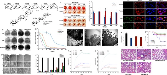 我院糖工程实验室于广利教授课题组与药理室王伟副教授合作对褐藻来源的系列糖类化合物进行了抗流感病毒活性筛选,从中发现了一种褐藻来源的硫酸多糖KW具有显著的体外抗甲型流感病毒作用且毒性很小。KW的抗流感病毒作用具有广谱性,且不易产生耐药性,效果优于金刚烷胺和奥司他韦。研究发现KW能够专一性地结合病毒NA蛋白进而特异性抑制其水解细胞表面唾液酸,阻止病毒的逃逸。KW 还能抑制宿主细胞对病毒颗粒的内吞,并干扰EGFR及其下游信号通路的激活。因此,KW主要是通过靶向病毒神经氨酸酶和宿主EGFR通路来抑制病毒的入侵和释放过程。低剂量的KW滴鼻给药还能显著抑制病毒感染小鼠存活率,效果与奥司他韦相当,为其开发成一种新型滴鼻剂或鼻喷雾剂用于流感病毒的预防和治疗提供了理论依据。该化合物专利权于2016年9月以334万元转让给威海人生药业有限公司。