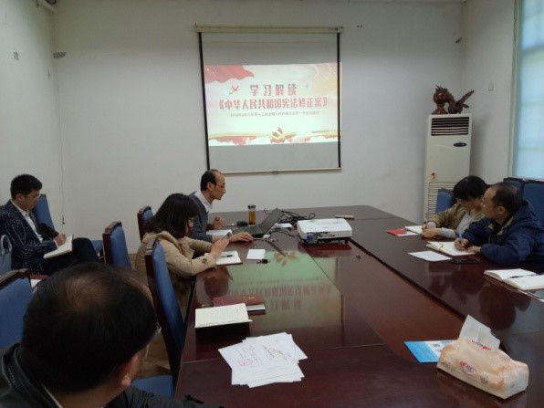 党支部书记韩峰领学《宪法修正案》 顾玉超老师谈学习认识