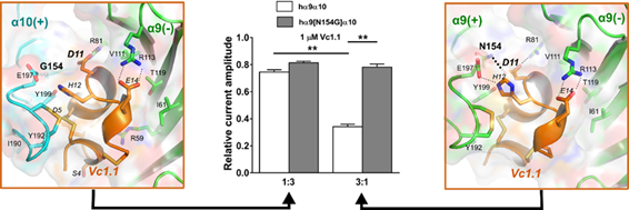 Molecular determinants conferring the stoichiometric-dependent activity of α-conotoxins at the human α9α10 nicotinic acetylcholine receptor subtype. J. Med. Chem. May 7, 2018. DOI: 10.1021/acs.jmedchem.8b00115