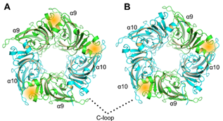 芋螺毒素是一种来源于海洋腹足动物芋螺毒液、富含二硫键的小分子肽,能选择性作用于离子通道或膜蛋白受体,其中的α-芋螺毒素可作用于乙酰胆碱受体(nAChR)的不同亚型。nAChR是配体门控离子通道,由5个亚单位构成(下图),在外周及中枢神经系统中参与神经递质的快速传输,介导中枢和外周神经系统的多种生理功能。α9α10型乙酰胆碱受体主要分布在哺乳动物的耳蜗,与听觉系统的形成与保护有关,最近研究发现,含有α9亚单位的 nAChR还与疼痛、肿瘤及免疫缺陷等疾病有关。因此,α9α10 nAChR已成为重要的镇痛药与潜在抗肿瘤药物的作用靶点。