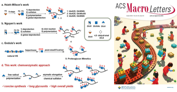 21. Jun Li, Chao Cai*, Lihao Wang, Chendong Yang, Hao Jiang, Miaomiao Li, Ding Xu, Guoyun Li, Chunxia Li, Guangli Yu*. Chemoenzymatic synthesis of heparan sulfate mimetic glycopolymers and their interactions with the receptor for advanced glycation end-product. ACS Macro Lett.,2019, 8, 1570-1574.