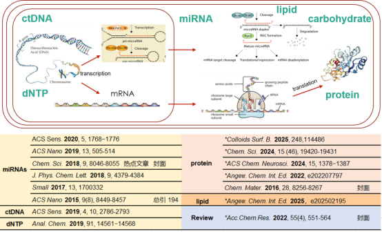 2020年加入中国海洋大学九游老哥J9俱乐部官网,中国海洋大学“青年英才工程”一层次计划资助获得者。长期从事荧光共振能量转移技术(Fo?rster Resonance Energy Transfer,FRET)在生物大分子互作和药物研发中的应用。具备光谱学,材料学,分子诊断学和药物分析学等多学科交叉背景。以镧系元素铽配合物或胶体半导体量子点为载体,发展了一系列高灵敏的多组分疾病生物标志物同步检测技术,在光谱分辨和时间分辨体外分子诊断领域实现了关键核心技术突破;建立了蛋白质、核酸及多糖等生物大分子的系统性分析方法和针对不同药物作用类型的模块化药物高通量筛选平台。 以第一作者(含共一)或通讯作者(含共通讯)在Acc. Chem. Res.,Angew. Chem. Int. Ed.,ACS Nano,Anal. Chem.等国际权威期刊上发表论文二十余篇;有4篇论文作为封面文章发表;论文总引1500余次,谷歌学术H index 22;在国际学术会议上做大会特邀报告1次,分会场邀请报告3次;先后获得国家自然科学基金青年科学基金项目(2021)、山东省泰山学者(青年专家)人才项目(2022)、山东省优青基金(2023)等项目支持。 | ||||||||