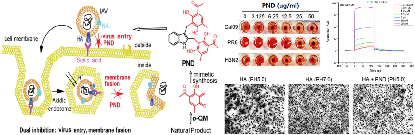 Chemoreactive-inspired discovery of influenza A virus dual inhibitor to block hemagglutinin-mediated adsorption and membrane fusion. J. Med. Chem., 2020 Jun 10, DOI: 10.1021/acs.jmedchem.0c00312.