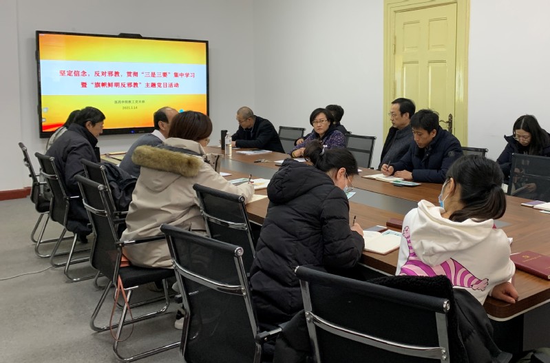 2021年1月14日下午,九游老哥J9俱乐部官网第一、第二党支部在鱼山校区地质馆221会议室开展“坚定信念,反对邪教,贯彻三是三要”集中学习暨“旗帜鲜明反邪教”主题党日活动,会议由教工第一党支部书记韩峰同志主持。