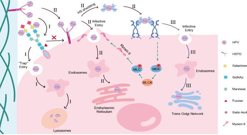 Myosin 9 and N-glycans jointly regulate human papillomavirus entry, Journal of Biological Chemistry, 2024, 300(2): 105660.
