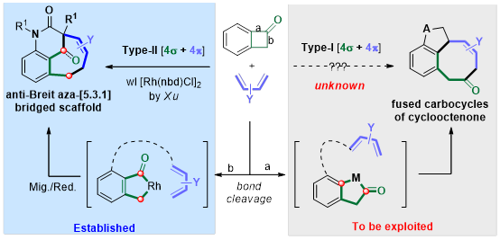 含有中环体系的化合物(特别是7、8元环)广泛分布于活性天然产物中,其在药物开发领域显示出独特的生物活性。如抗癌药物紫杉醇(Taxol)和抗菌药物来法莫林(Lefamulin)等。由于较大的跨环张力以及构象的不稳定性,中环体系的高效构建(图1),一直是合成化学长期以来的难题与挑战。
