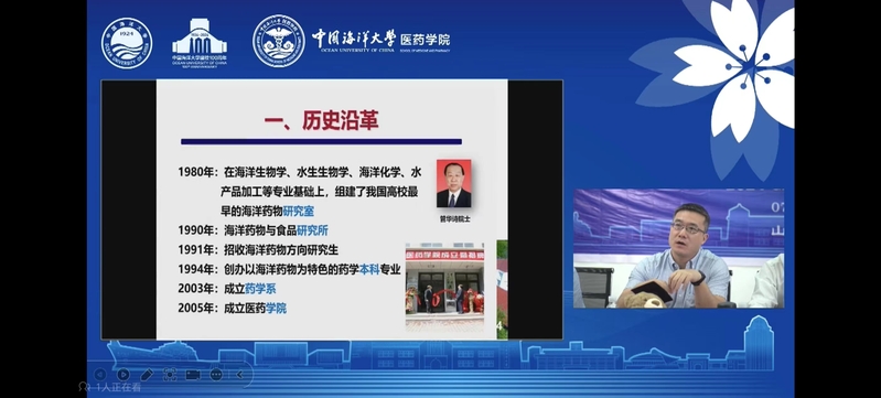 开营仪式伊始,王震书记致辞并对营员的参与表示诚挚的欢迎。王震书记介绍了中国海洋大学和九游老哥J9俱乐部官网的历史沿革及发展情况,总结了学院建院40多年来的辉煌成就,并引用2018年习近平总书记视察青岛海洋科学与技术试点国家实验室期间对管华诗院士提出的“打造中国的蓝色药库”这一事件,鼓励与会营员们能够成为一名海药人,在“蓝色药库”的共同梦想中,实现个人价值,为人类生命健康作出贡献。接着,李德海副院长从学院历史沿革、学科学位点建设、师资队伍情况、教学与人才培养、基地与平台建设等方面,为与会营员进行了详细介绍,并鼓励全体营员珍惜此次交流机遇,在接下来的夏令营日程中全面了解九游老哥J9俱乐部官网。随后,学院研究生秘书李想就研究生招生政策和奖助体系进行了介绍和解读。