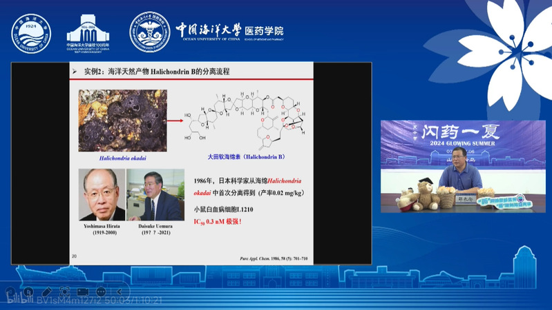 开营仪式结束后,学院邵长伦教授为全体营员带来《海洋创新药物的发展、机遇与挑战》主题学术报告。在报告中,邵长伦教授引用自身留学经历,深入浅出地为营员们阐释了天然产物在创新药物研发中迎来的新机遇,并鼓励广大药学有志青年能够选择海大共同学习研究。