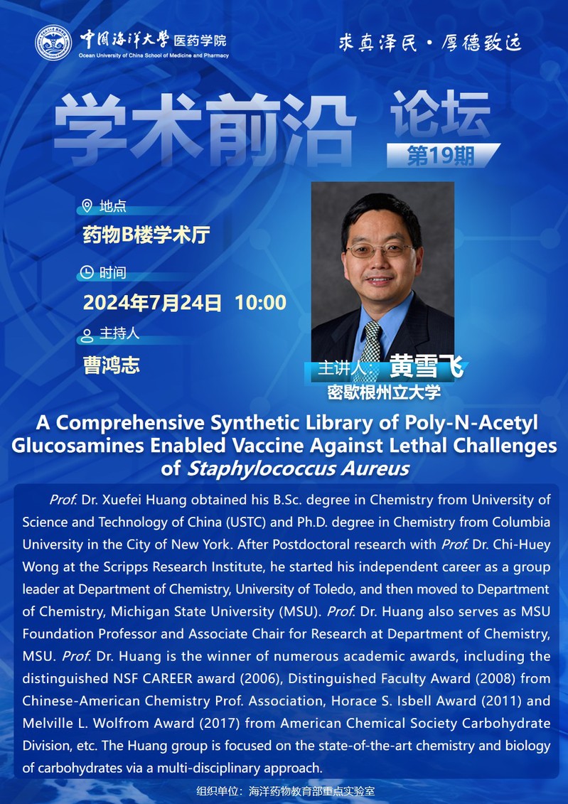 报告题目:A Comprehensive Synthetic Library of Poly-N-Acetyl Glucosamines Enabled Vaccine Against Lethal Challenges of Staphylococcus Aureus