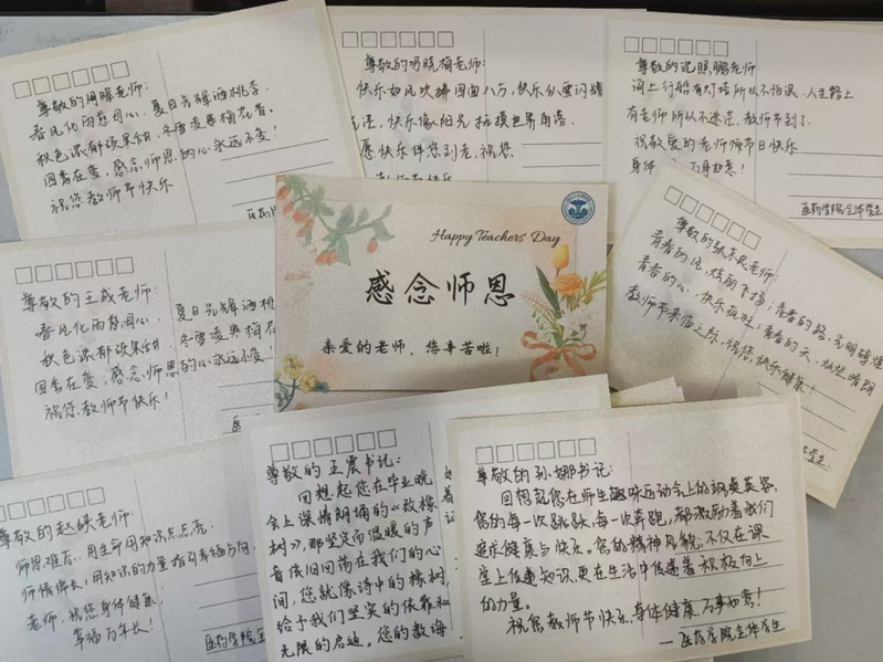 “笔墨寄心语,纸短道情长。”同学们将温暖深情的祝福和真挚的情感写在明信片上赠予学院所有老师们。小小卡片,写不下满腔谢意;寥寥数言,道不尽师恩绵长。