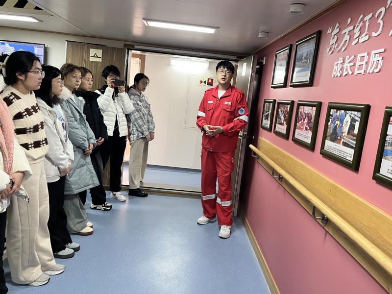 12月1日,实习活动正式拉开帷幕。首先进行的是全面而细致的理论知识学习。安全知识讲解犹如一颗定心丸,让同学们在面对未知的海洋环境时,心中有了应对风险的底气。通过观看东方红3号介绍视频《向海图强》浩海求索,同学们仿佛穿越时空,见证了我国海洋科考事业一路走来的艰辛与辉煌,深刻领悟到了“浩海求索”背后的深远意义。