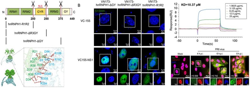 图1. RNA剪接因子hnRNPH1与病毒NS1蛋白的互作研究