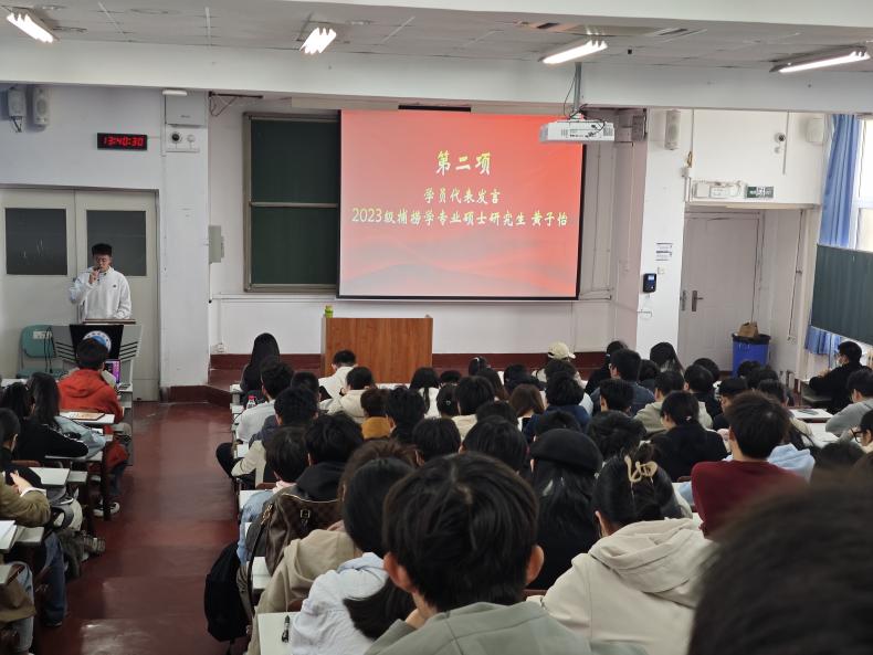 随后,学员代表水产学院2023级捕捞学专业硕士研究生黄子怡发言。他号召全体入党积极分子珍惜学习机会,以严格标准要求自己,端正学习态度,不断完善自我,提高自己的理论水平和思想素质,努力向党组织靠近,奋力书写无愧于历史、无愧于人民的崭新青春篇章。
