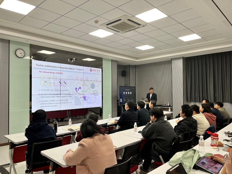 汤新景教授的报告主题为《靶向致病RNA和蛋白的核酸药物研究》。在报告中,汤教授深入剖析了核酸药物在当前医学研究中的机遇与挑战,并围绕靶向核酸降解的嵌合核酸药物、靶向蛋白水解的嵌合核酸药物以及靶向miRNA的环状核酸药物三大领域,详细展示了其团队取得的最新研究成果。在靶向核酸降解的嵌合核酸药物研究方面,汤教授团队利用反义核酸的特异性,精准靶向病毒RNA,从而有效抑制病毒蛋白的表达,阻断病毒的增殖与再组装。开发NATAC嵌合ODNS技术靶向RNA降解,并借助假病毒体系,成功构建了针对新型冠状病毒假病毒的NATAC嵌合体,该嵌合体能够显著抑制病毒增殖,为病毒性疾病的治疗提供了新的策略和思路。在靶向蛋白降解的嵌合核酸药物领域,汤教授团队开展了针对致癌蛋白降解的嵌合miRNA核酸药物的设计与应用研究,在细胞水平和动物水平上均展现出良好治疗效果的优选分子。此外,汤教授团队在靶向miRNA的环状核酸药物研究领域,通过合理设计和构建环状寡聚核苷酸,发现环状硫代寡聚核苷酸能够更高效地诱导miR-21和miR-222的降解,并显著上调PTEN和PDCD4等下游抗肿瘤蛋白的表达水平。更为重要的是,环状硫代寡聚核苷酸在应用过程中大大降低了反义寡聚核苷酸诱导的非特异性免疫刺激效应,其独特的拓扑性质还显著降低了作为miRNA抑制剂时的脱靶效应,从而赋予了更高的靶向特异性。上述系列研究成果充分展现了核酸药物研究的独特魅力和巨大潜力,为临床应用转化奠定坚实基础。