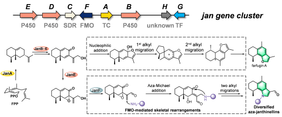 图2. Farfugin A和aza-janthinellins型eremophilenes的形成机制