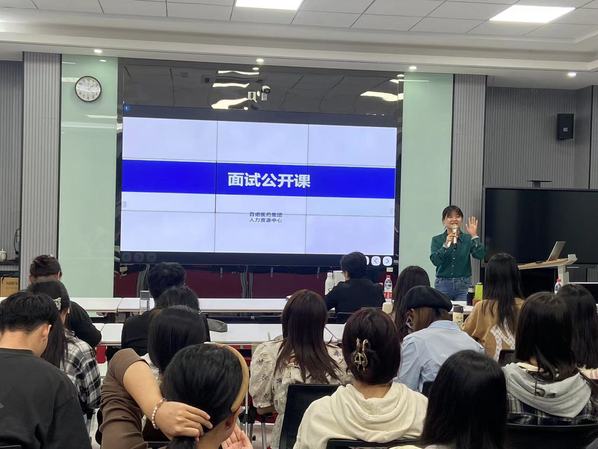 李珂馨经理从“我是谁”、“我真的了解我应聘的公司吗”向同学们提出问题,再向同学们展示了HR在面对求职者时真正希望得到哪些具体信息以及作为求职者如何将自己的优势在简历中展示出来,最后从具体案例出发,指导同学们应该如何分析招聘网站上公司发布的求职信息,同时如何制作简洁明了但却引人注目的简历。李经理还向同学们展示了具体的招聘陷阱与求职陷阱。
